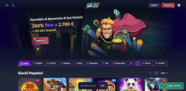 Spin Lander rappresenta la nuova generazione di casino online non AAMS, con un’interfaccia moderna e funzionalità tecnologiche avanzate. Il suo pacchetto di benvenuto del 260% fino a 3.000€ + 530 giri gratis lo rende competitivo con i migliori del settore.