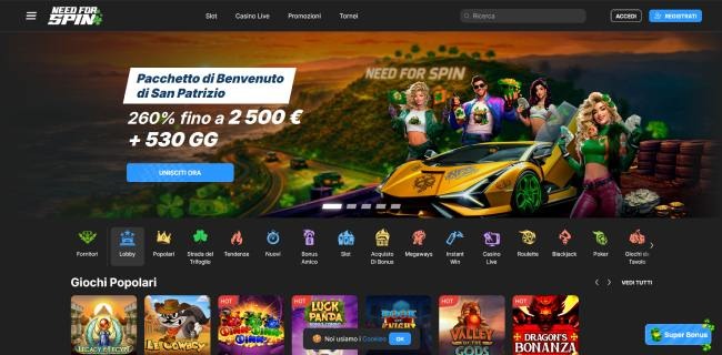 | Need for Spin | 260% fino a 2.500€ + 530 FS | ❌ Non richiesto | ✅ Sì | ⭐⭐⭐⭐½ |
